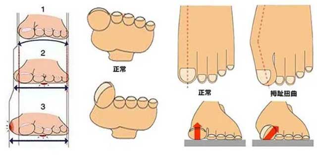 5、足部生理結構異常:其中最常見的為扁平足,其他結構異常有第一跖骨過長、第一跖骨內翻、拇趾旋前畸形等,這些情況也很容易導致拇外翻的發生。
