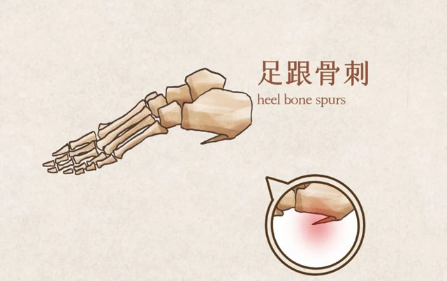 跟骨退行性改變導致的骨質增生,即“骨刺”,也是導致足跟痛的常見原因之一。當“骨刺”長期存在,且長“骨刺”的跟骨長期負重或負重過大,引起局部充血和發生無菌性炎癥時,刺激病變部神經,足跟才會痛。