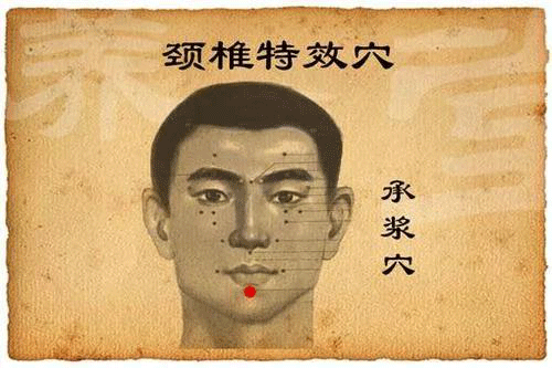 如果再配合揉揉承漿穴,效果會更好。承漿穴的位置,見下圖,在承漿穴所在區域內找痛點按揉,就能有作用。