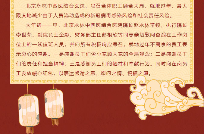 當前位置: 主頁 > 新聞資訊 > 醫院新聞 > 全院員工堅定不移響應就地過年政策,永林醫院領導班子春節暖心慰問