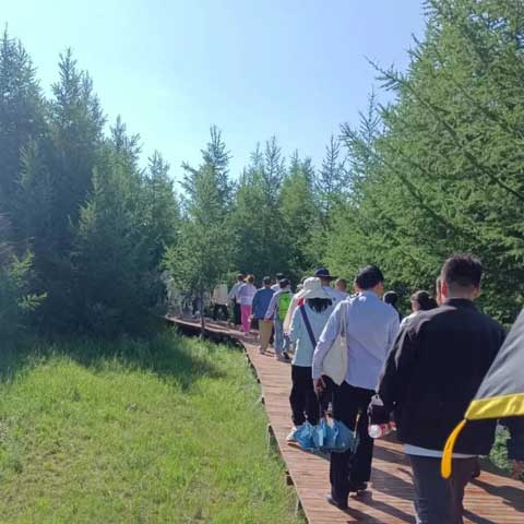 大家懷著新奇的心情穿梭在林間小路和玻璃棧道,探尋各種珍奇樹種和奇花異草,欣賞湖邊美景,仿佛來到仙境一般,令人心曠神怡。