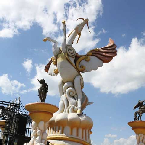 舞馬世界是一個以馬文化為主題的游樂園,擁有馬文化展廳、壩上方舟、怪屋、斜屋、旋轉秋千、兵器屋、服飾屋、縣衙、風月樓、三國街區等觀賞體驗項目,大家都紛紛瀏覽體驗了一番,趣味甚濃。隨后大家觀看了大氣磅礴的大馬戲《草原絲路》,演出精彩紛呈,每個環節各具不同文化特色,給大家帶來一場無比震撼的視聽盛宴。