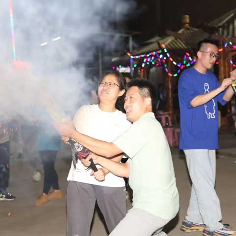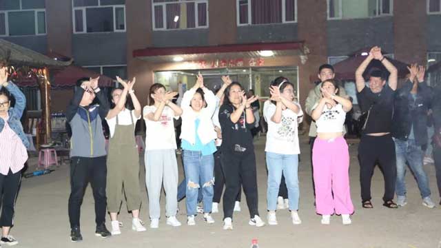 夜幕降臨,篝火點燃,大家熱情高漲,做游戲、歡歌熱舞、燃放煙花,夜空璀璨、霓虹閃耀、匯聚成一片歡樂的海洋。