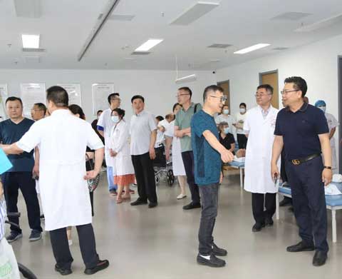 在參觀醫院環節,趙永林院長帶領調研組對我院中醫科、骨傷科、康復科、臨床心理(失眠)科、內科、住院部、檢驗科、放射科等各主要業務科室進行了參觀,并就相關科室業務開展情況進行了介紹。考察組對我院近年來在軟硬件建設及業務發展方面取得的成績給予了充分肯定和好評。