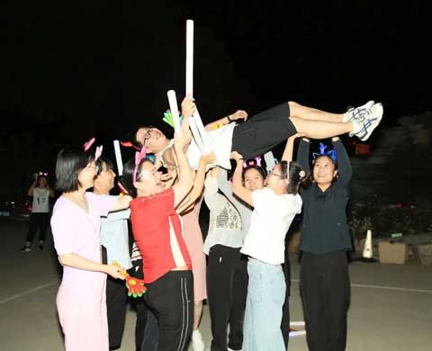 炫出精彩,舞動(dòng)青春夢(mèng)想。篝火晚會(huì)上,一場(chǎng)新奇而刺激的集體游戲正式上演,大家熱情高漲,歡歌熱舞,匯成一片歡樂的海洋。