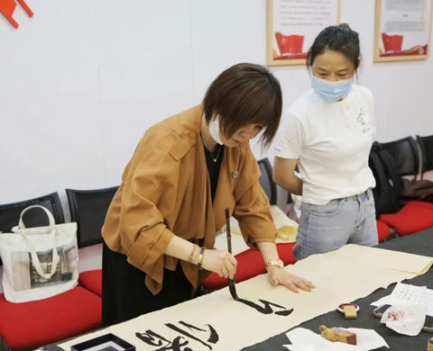 在醫院五樓會議室,書法家們揮毫潑墨,巧思妙書,為我院醫護工作者創作了二十余副書法作品。每位書法家的藝術風格都各具特色,功底深厚,有的作品工整雋永,有的蒼勁有力,有的飄逸靈動,都無不彰顯出書法家中國書法藝術的博大精深,為全院醫護呈獻了一場藝術盛宴。