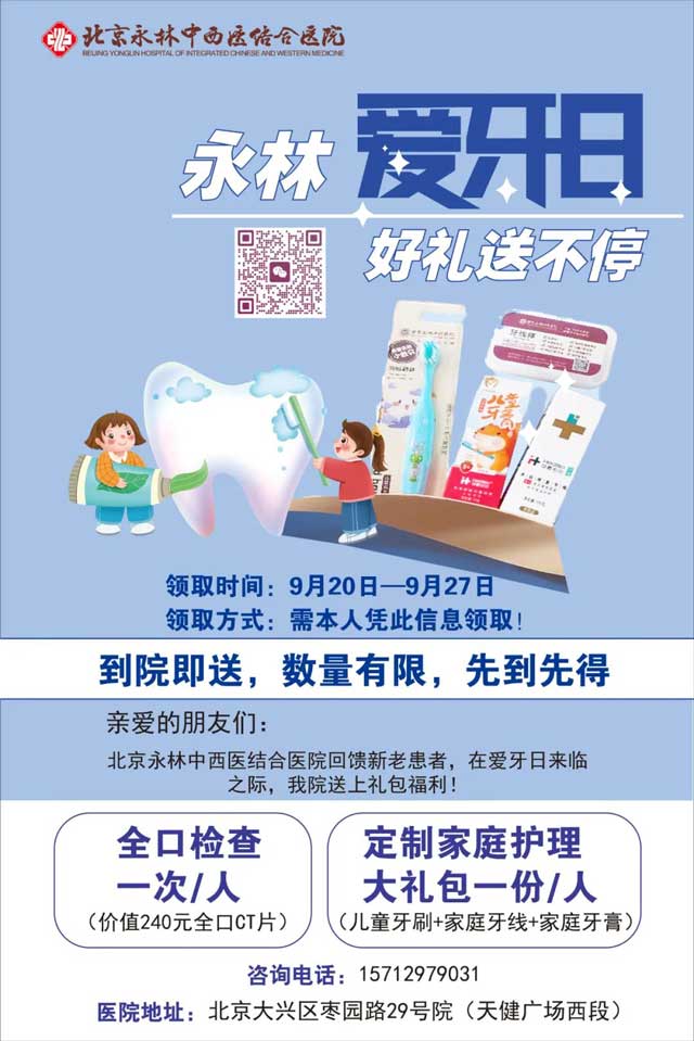 永林中西醫結合醫院作為大興區小學生及學齡前兒童口腔保健指定機構,承擔著轄區數千名小學生及學齡前兒童的口腔保健及健康篩查任務,數年來已完成數萬人次的口腔健康篩查、涂氟、窩溝封閉等保健服務,為促進廣大少年兒童的口腔健康積極貢獻力量。