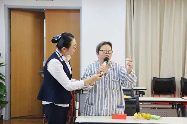 在娛樂互動環節,精彩紛呈,先后進行了緊張而快樂的擊鼓傳花節日祝福游戲,住院患者及護工朋友演唱了《草原上升起不落的太陽》、《渴望》、《莫斯科郊外的晚上》等優美歌曲,毛主席詩詞《采桑子·重陽》深情朗誦等,精彩的表演贏得陣陣掌聲,現場一片歡樂祥和的氣氛。