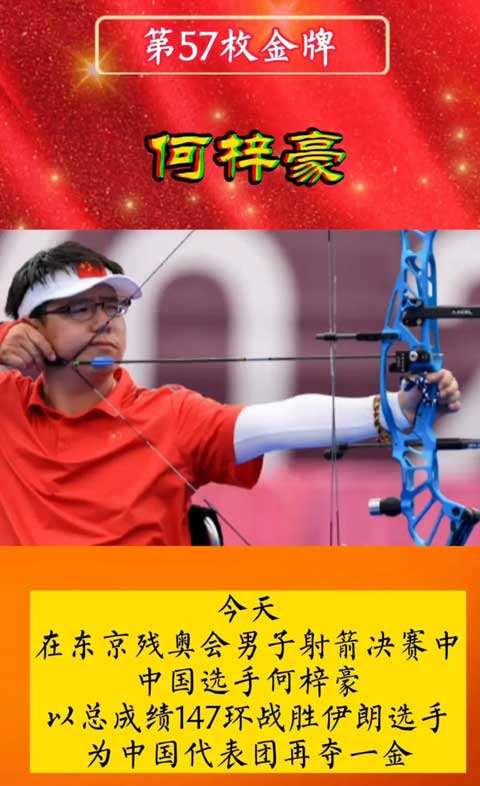 何梓豪,北京大興人,中國殘疾人射箭運動員。2021年8月29日,東京殘奧會射箭復合弓公開級混合團體賽決賽,由何梓豪及林月珊組成的中國隊在決賽中戰勝土耳其隊,獲得金牌?;8月31日,東京殘奧會男子個人復合弓公開級決賽奪得金牌,并在半決賽中射出了148環的總成績打破殘奧會紀錄。