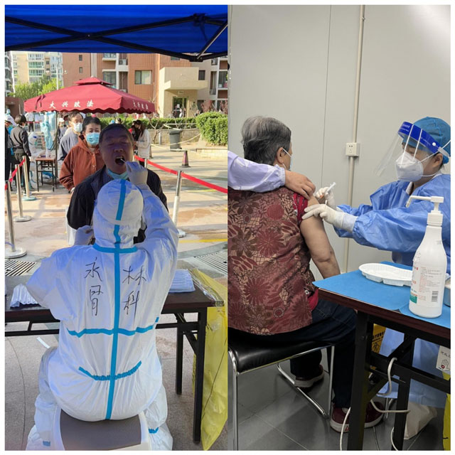 自疫情發(fā)生兩年多來,永林醫(yī)療在持續(xù)做好內(nèi)部疫情防控的同時(shí),積極參與社會(huì)面防控的物資、人員、宣傳推進(jìn)等各項(xiàng)事務(wù)。據(jù)不完全統(tǒng)計(jì),僅今年1月至今,僅永林醫(yī)療(集團(tuán))旗下北京永林中西醫(yī)結(jié)合醫(yī)院一家就共派遣383人次支援政府組織的核酸檢測,包含大興區(qū)西紅門鎮(zhèn)、天宮院街道、清源街道、亦莊鎮(zhèn)采樣點(diǎn),支援豐臺(tái)疫情核酸檢測應(yīng)急行動(dòng)。支援天宮院街道和北臧村入戶核酸采集派遣176人次,隔離點(diǎn)核酸采樣派遣119人次,部分人員工作長達(dá)18小時(shí)/每天;在新冠疫苗接種工作中共派遣595人次參與瀛海足球公園接種點(diǎn)的接種工作,有效緩解疫情防控各項(xiàng)活動(dòng)中人員緊張壓力,受到上級(jí)部門的一致認(rèn)可。