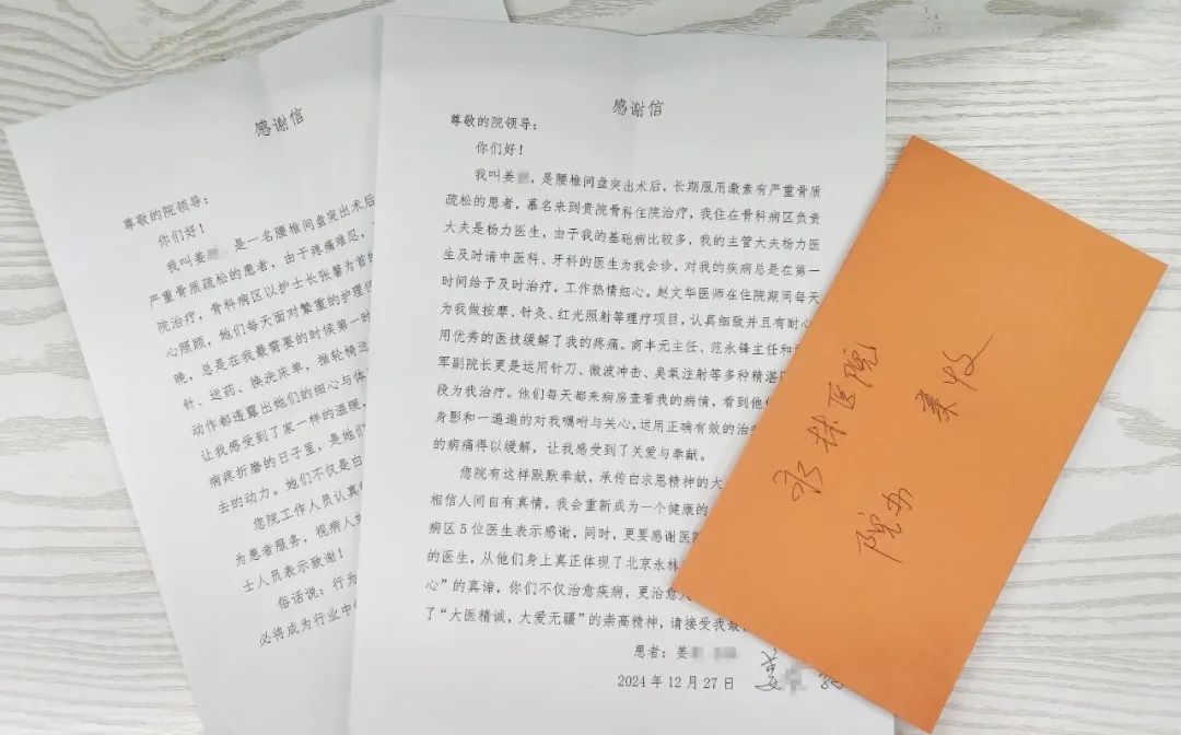 醫者仁心,大愛無疆——患者寫感謝信向骨科住院部醫護致謝