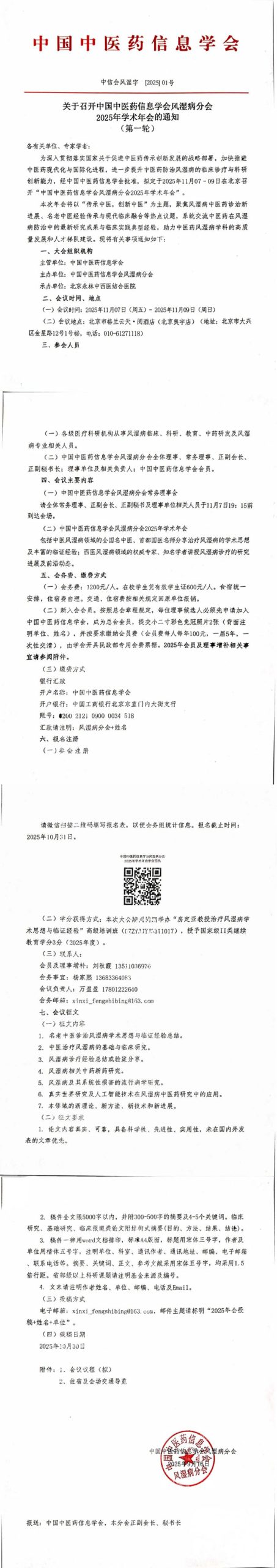 由中國(guó)中醫(yī)藥信息學(xué)會(huì)風(fēng)濕病分會(huì)主辦,北京永林中西醫(yī)結(jié)合醫(yī)院協(xié)辦的中國(guó)中醫(yī)藥信息學(xué)會(huì)風(fēng)濕病分會(huì)2025學(xué)術(shù)年會(huì)將于2025年11月7日至11月9日在北京市大興區(qū)召開(kāi)。